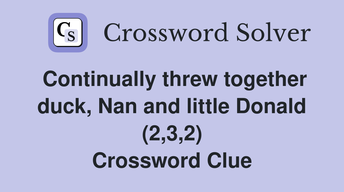 Continually threw together duck, Nan and little Donald (2,3,2) Crossword Clue Answers