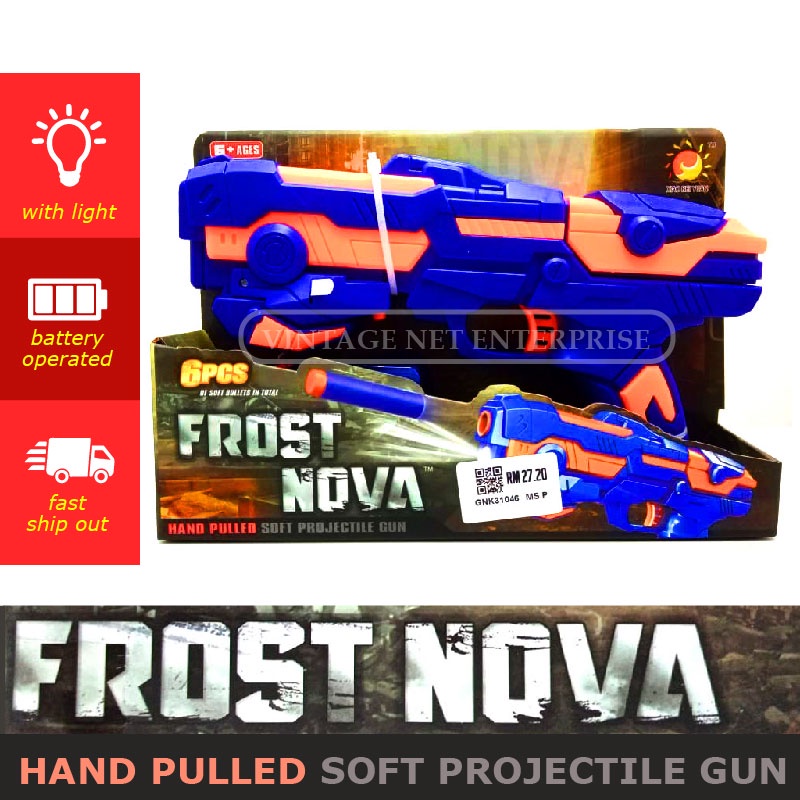 FROST NOVA Hand Pulled Soft Projectile Gun Toy with 6 Soft Bullets & Light Kids Shooting Gun Toy