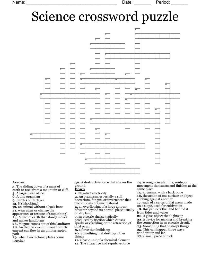 Science crossword puzzle WordMint