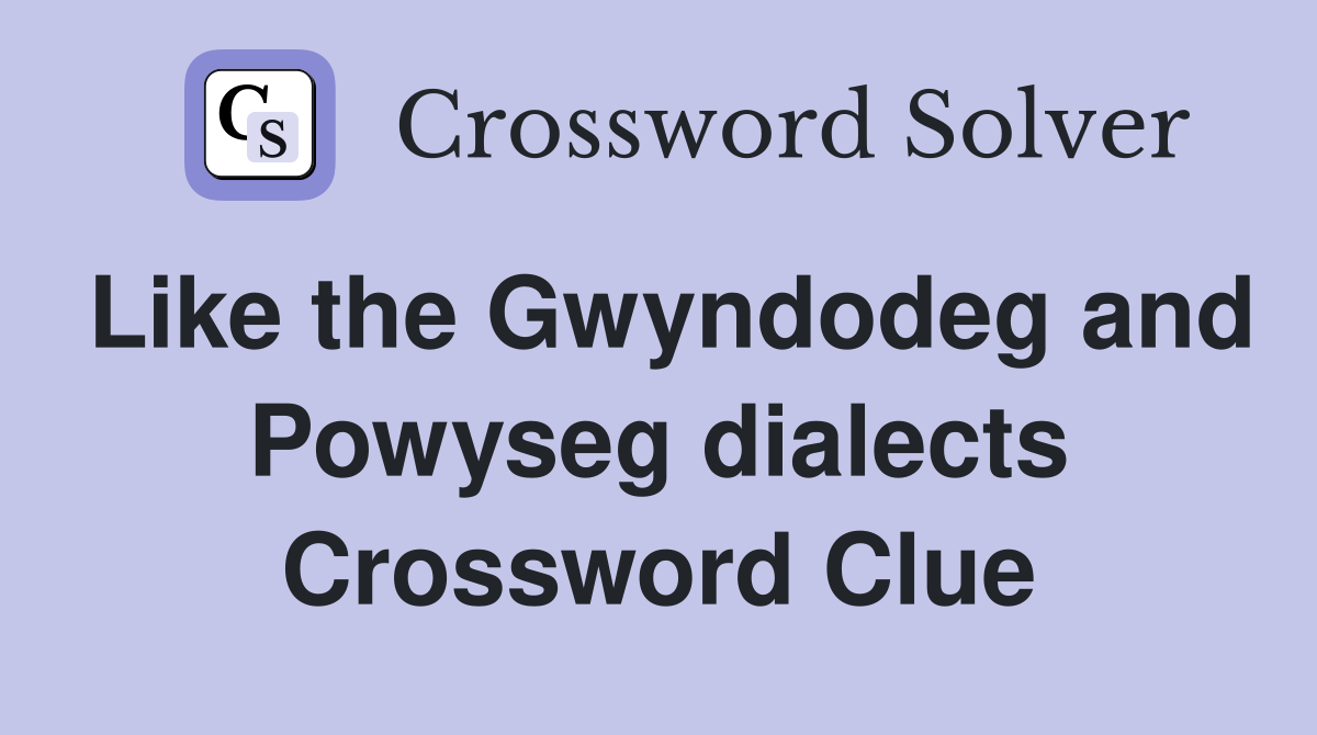 Like the Gwyndodeg and Powyseg dialects Crossword Clue Answers Crossword Solver