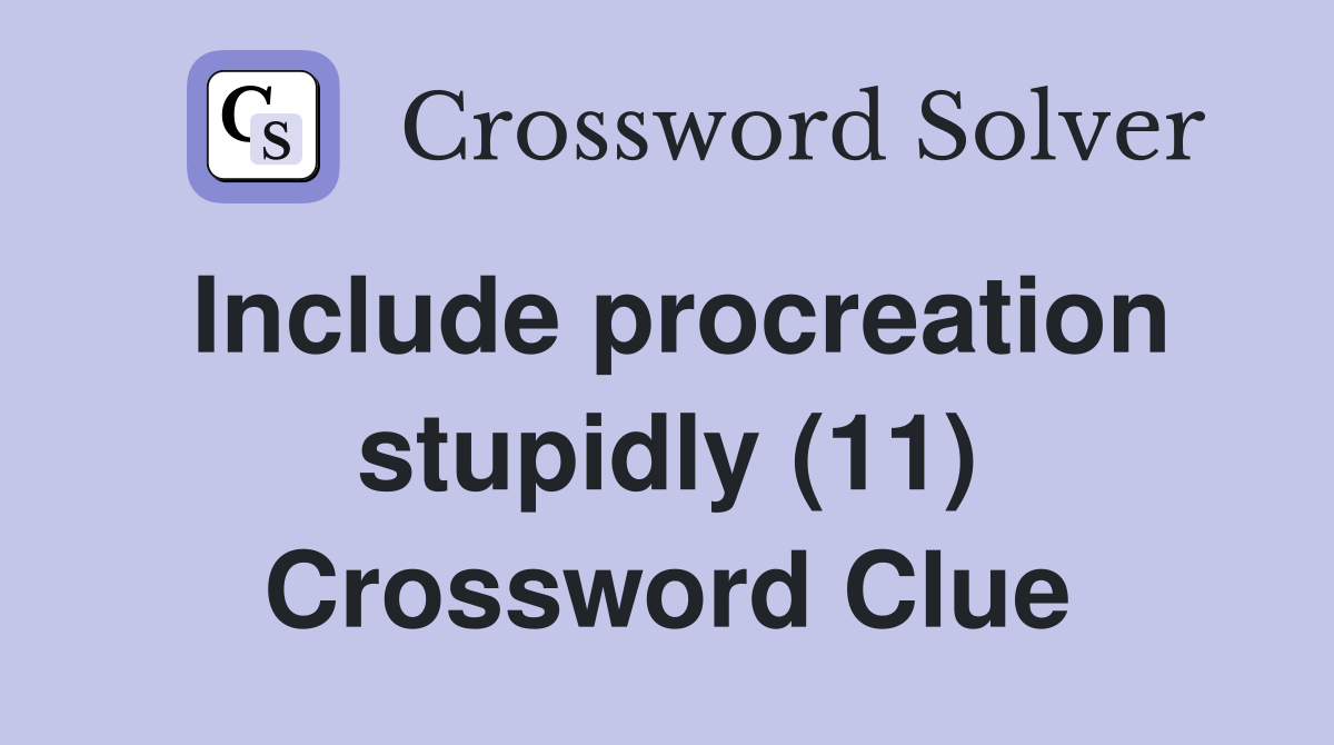 Include procreation stupidly (11) Crossword Clue Answers Crossword Solver