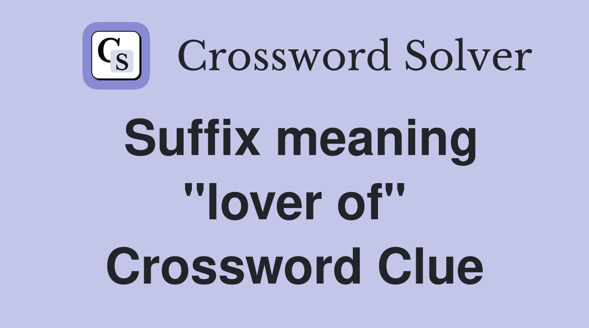Suffix meaning "lover of" Crossword Clue Answers Crossword Solver