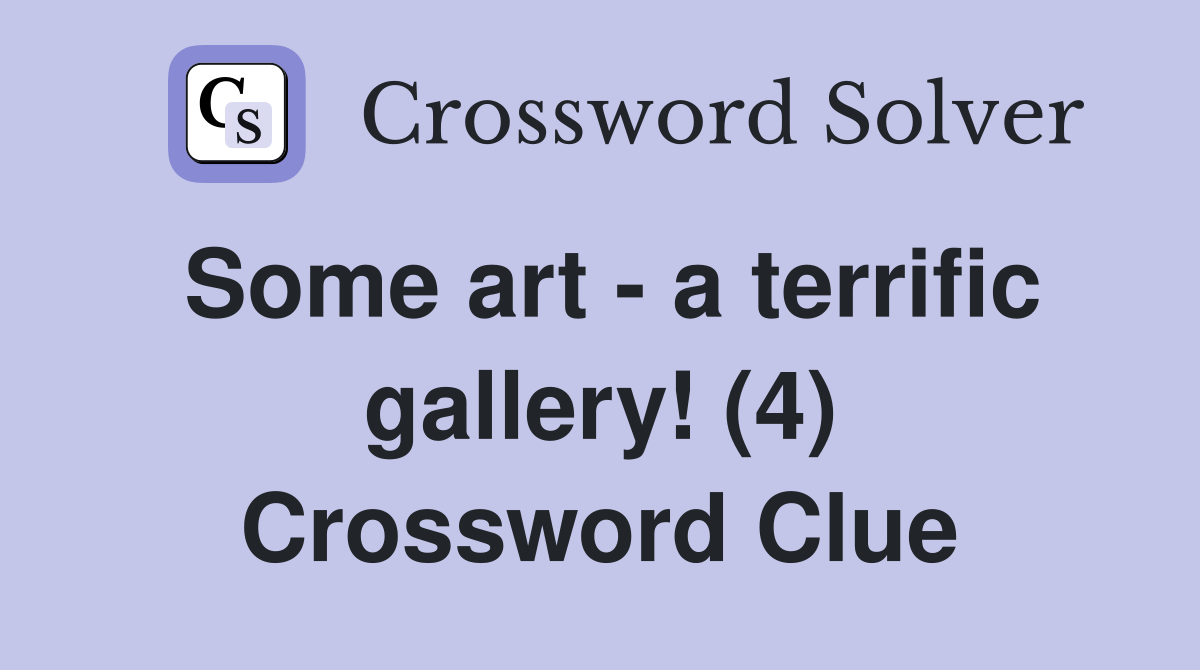 Some art a terrific gallery! (4) Crossword Clue Answers Crossword Solver