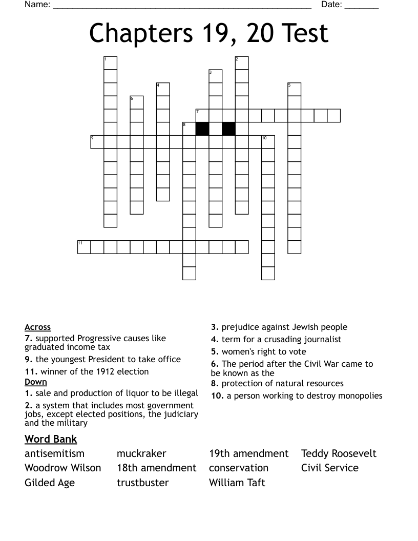 Chapters 19, 20 Test Crossword WordMint