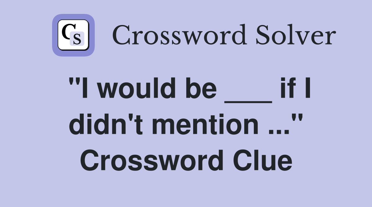 "I would be ___ if I didn't mention" Crossword Clue Answers Crossword Solver