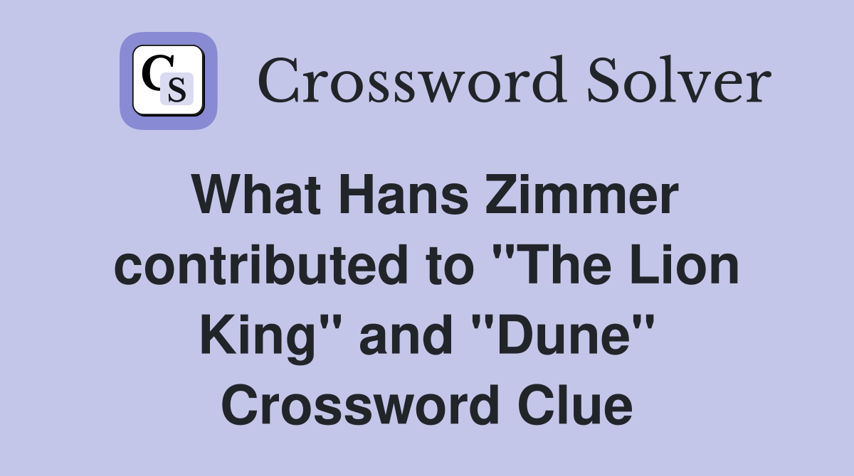 What Hans Zimmer contributed to "The Lion King" and "Dune" Crossword Clue Answers Crossword