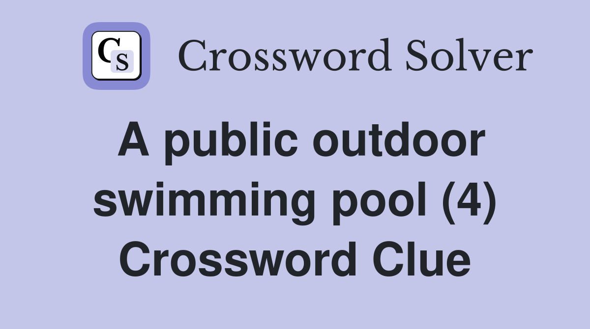 A public outdoor swimming pool (4) Crossword Clue Answers Crossword Solver