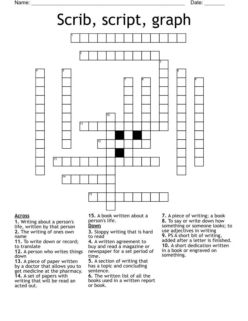 Scrib, script, graph Crossword WordMint