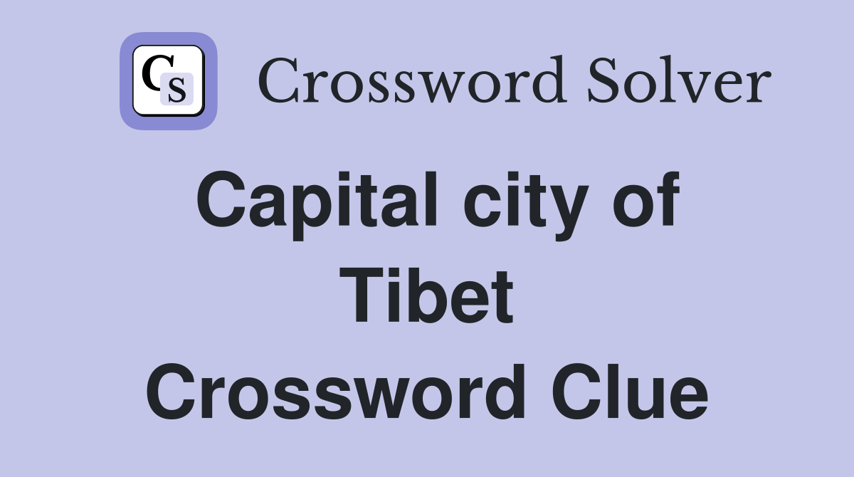 We have found 40 possible. Capital of tibet is a crossword puzzle clue that we have spotted over 20 times. The top solutions are determined by popularity, ratings and.