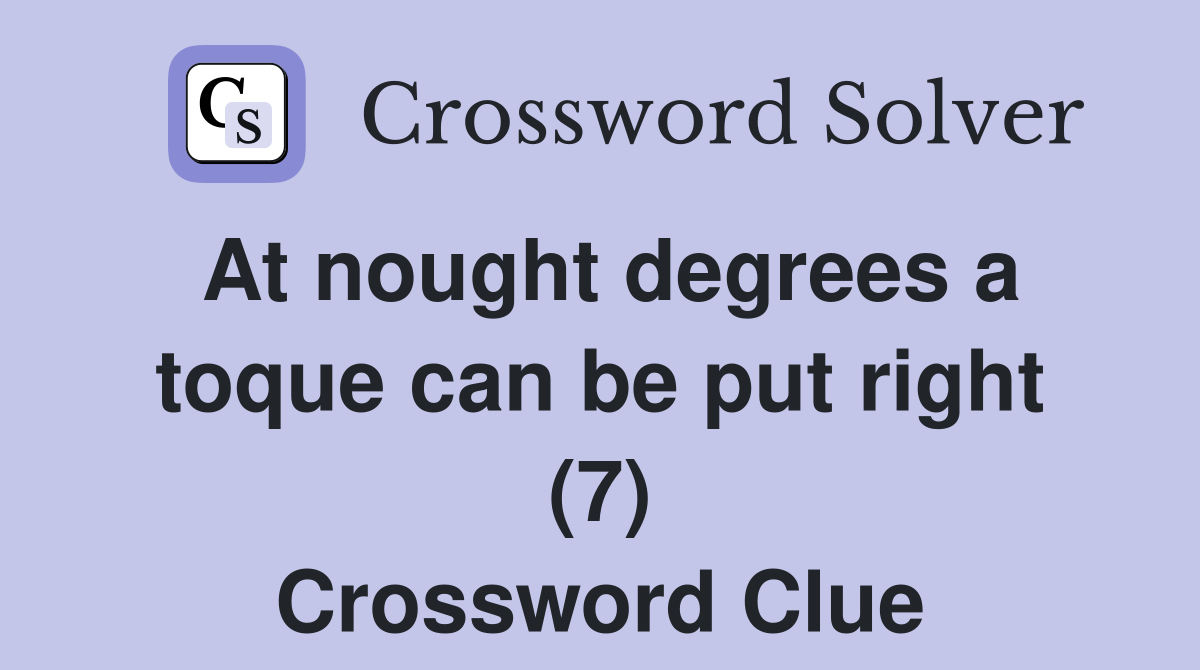 At nought degrees a toque can be put right (7) Crossword Clue Answers Crossword Solver