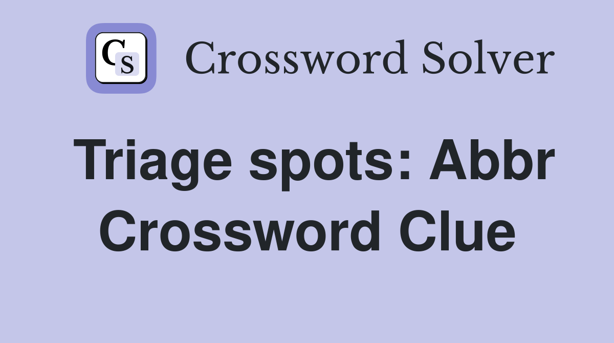 Triage spots Abbr. Crossword Clue Answers Crossword Solver