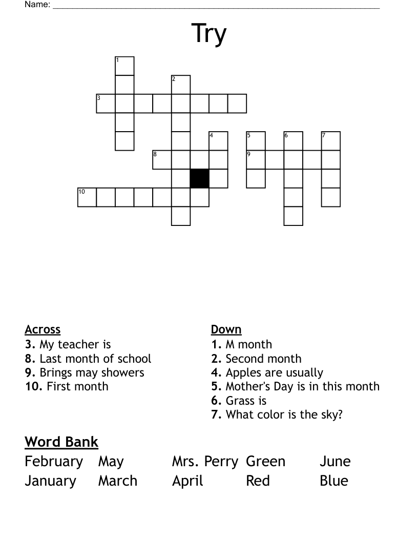 Printable Crossword Puzzles For Kids With Word Bank Printable Crossword Puzzles