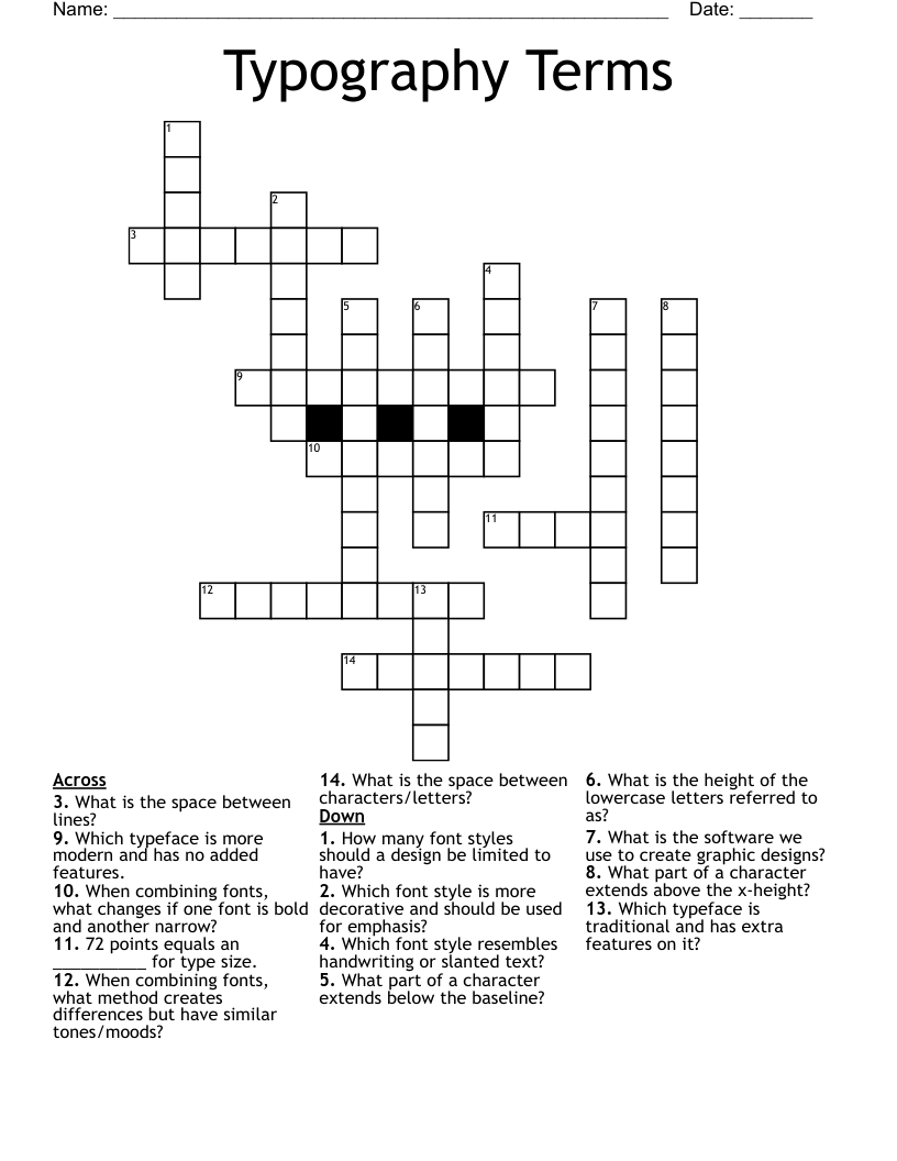 Typography Crossword Puzzle