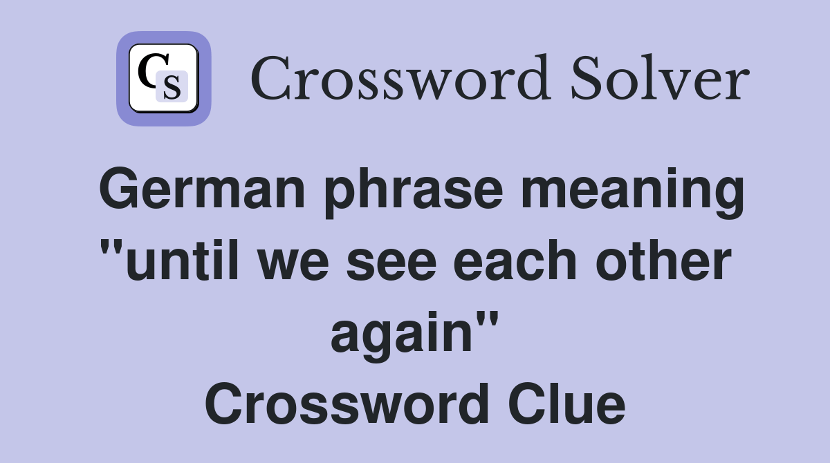 German phrase meaning "until we see each other again" Crossword Clue Answers Crossword Solver