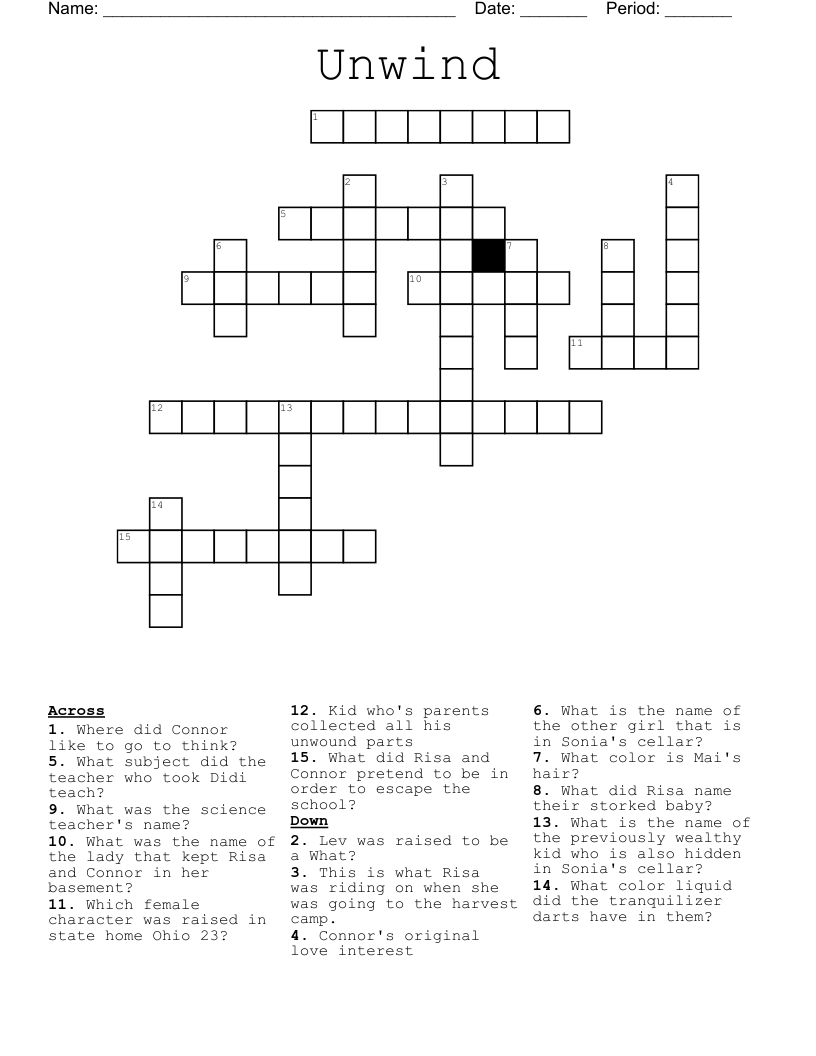 Web find 27 solutions for the crossword puzzle term unwind, ranging from 3 to 15 letters. Web find out how to solve the crossword puzzle clue unwind, which has over 20 possible solutions. Also get synonyms for unwind,. Web the most popular crossword solutions for unwind are rest (4 letters), relax (5 letters). All synonyms & crossword answers with 5.