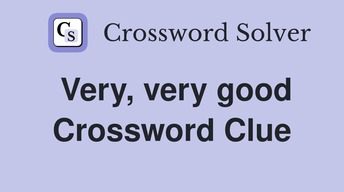 Very, very good Crossword Clue Answers Crossword Solver