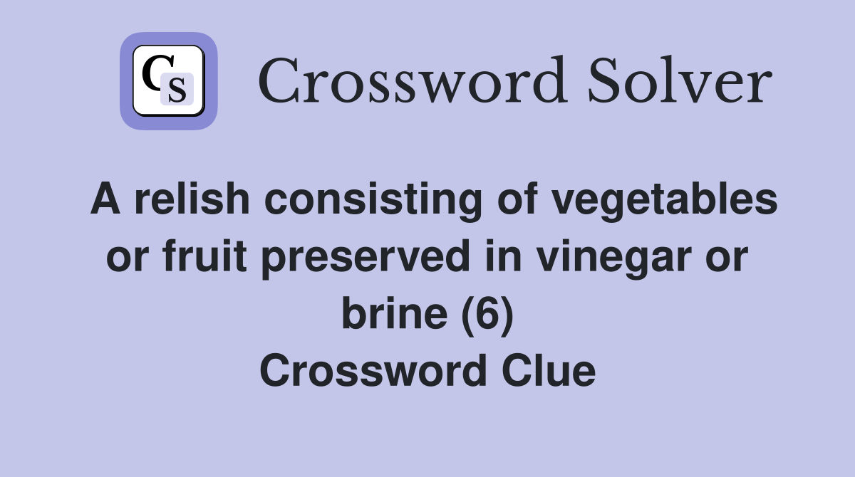 A relish consisting of vegetables or fruit preserved in vinegar or brine (6) Crossword Clue