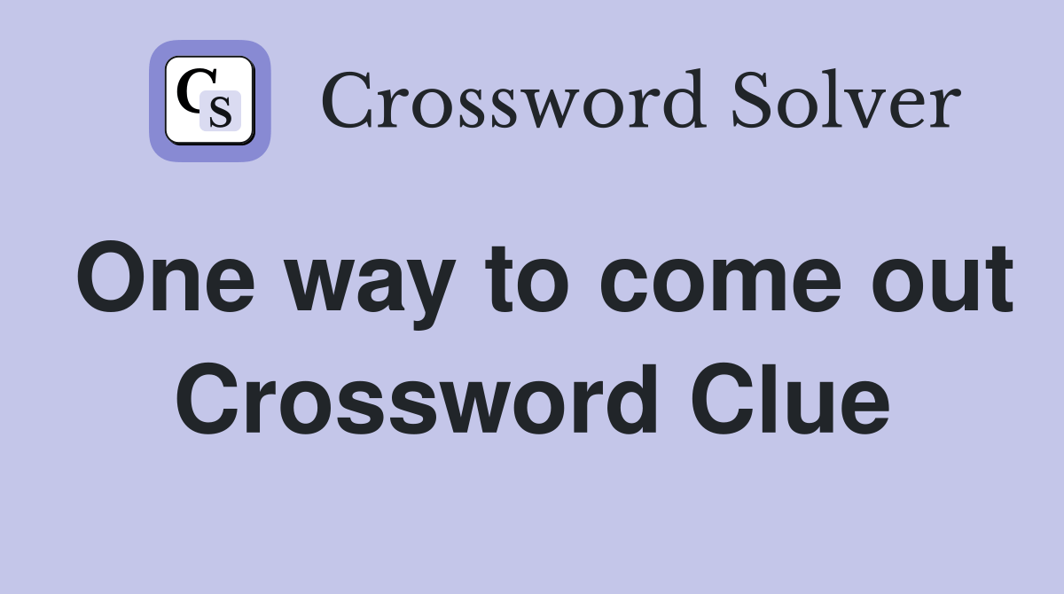 Here is the answer for the crossword clue way out ___. Web best answers for way out: The crossword solver finds answers to classic. Web today's crossword puzzle clue is a quick one: We will try to find the right answer to this particular crossword clue.