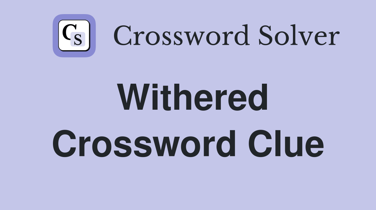 Web Find 27 Solutions For The Crossword Puzzle Term Withered, Ranging From 3 To 12 Letters.
