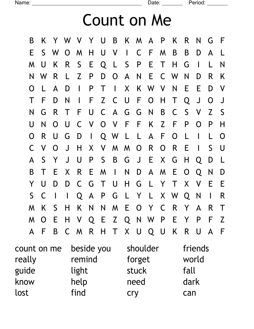 Count on Me Word Search WordMint